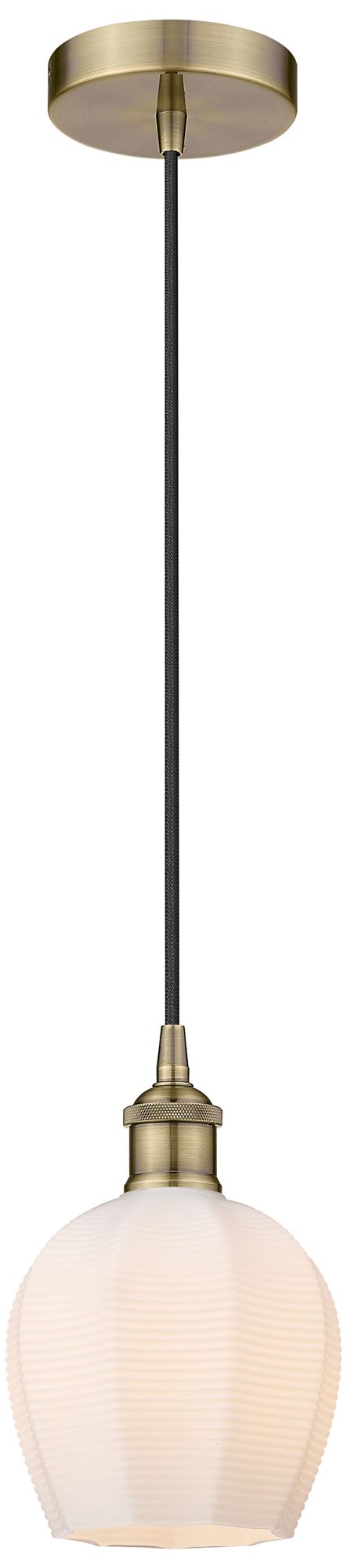 Edison Norfolk 6" Antique Brass Cord Hung Mini Pendant w/ Matte White
