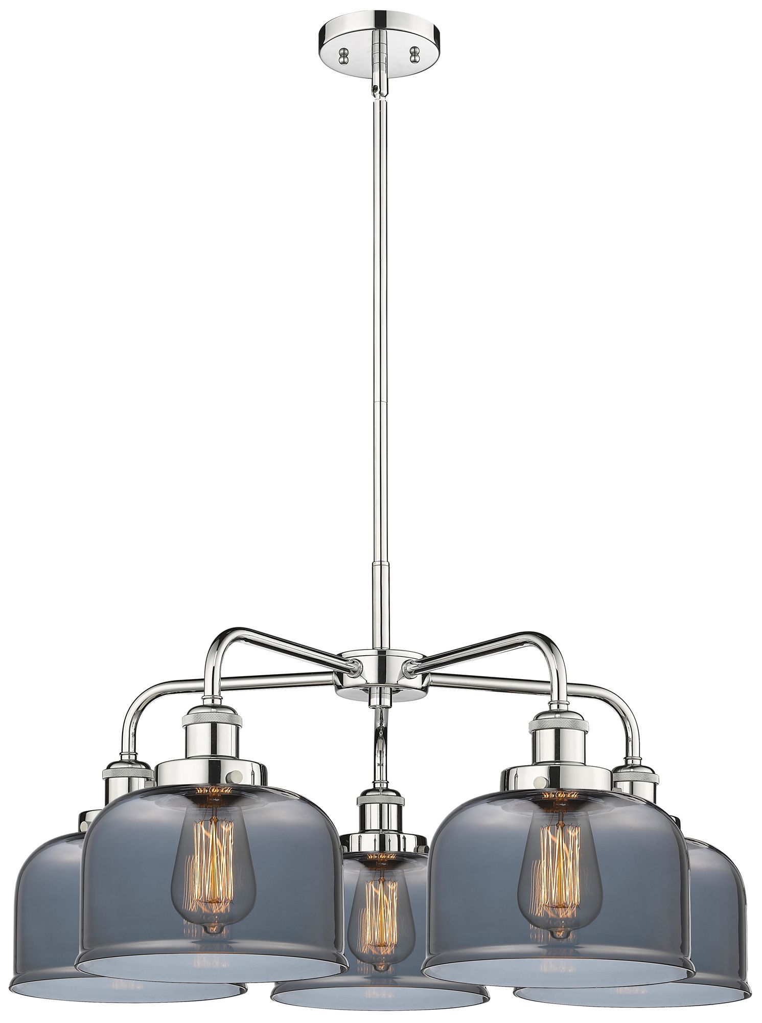 Bell 26"W 5 Light Polished Chrome Stem Hung Chandelier w/ Smoke Glass