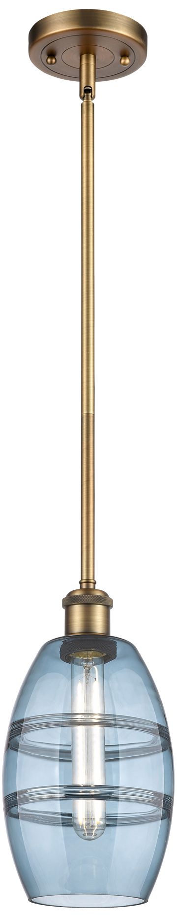Ballston Vaz 5.88"W Brushed Brass Stemmed Mini Pendant w/ Blue Shade