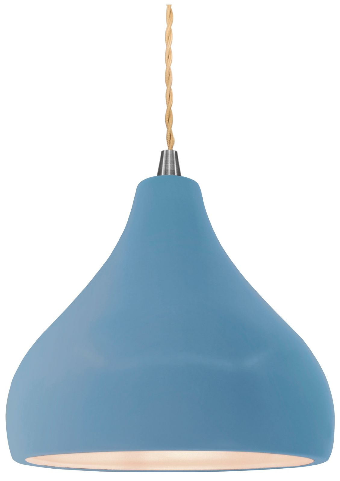 Radiance 8"W Sky Blue Frame Nickel Small Droplet Beige Twisted Pendant