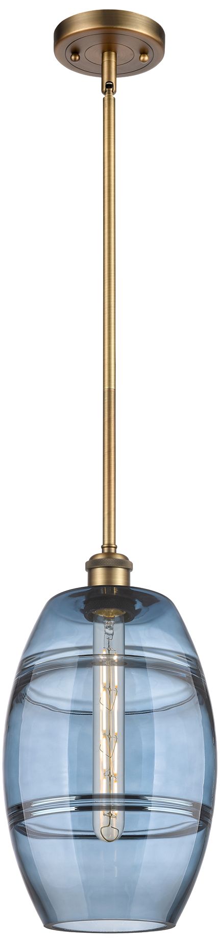 Ballston Vaz 8"W Brushed Brass Stemmed Mini Pendant w/ Princess Blue S