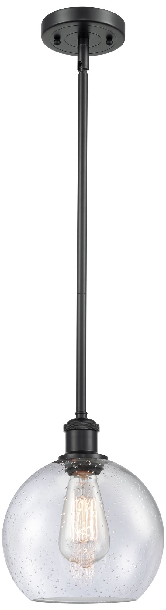 Ballston Athens 8"W Stem Hung Matte Black Mini Pendant w/ Seedy Shade