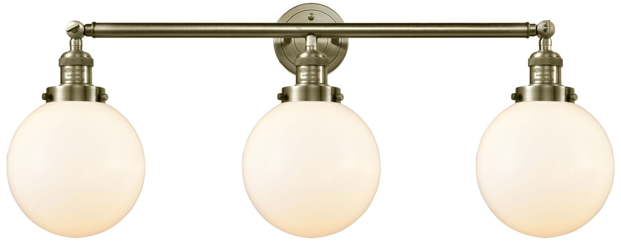 Beacon 3 Light 32" Bath Light - Antique Brass - Matte White Shade