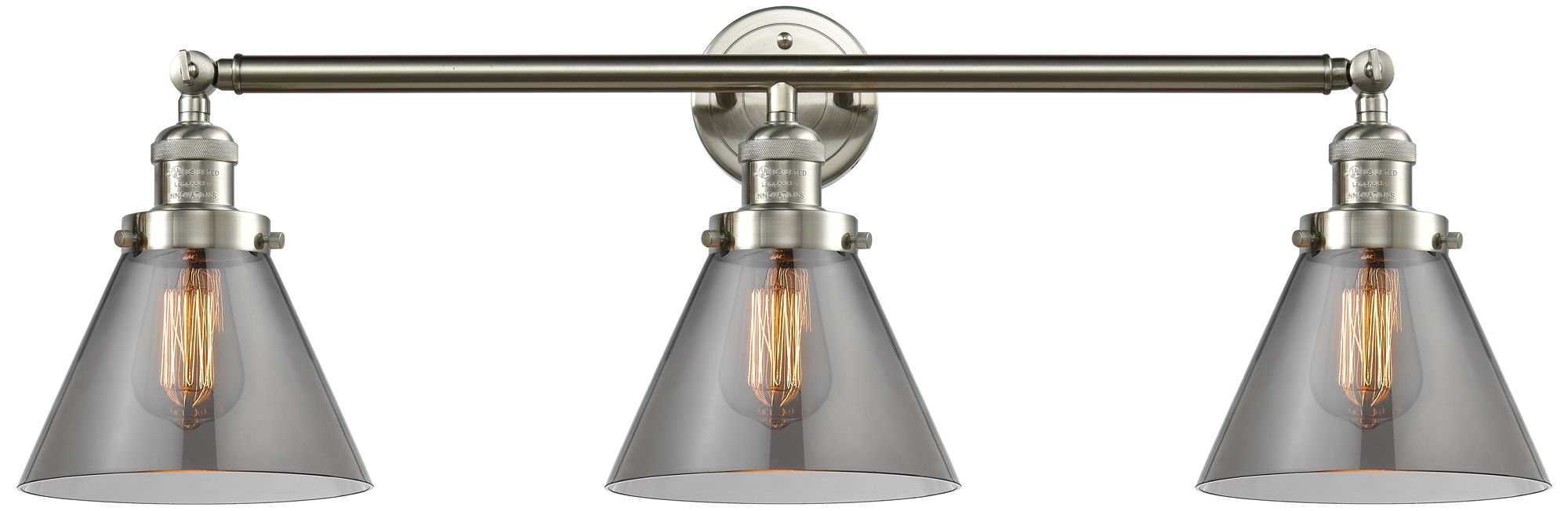 Cone 32" 3-Light Brushed Satin Nickel Bath Light w/ Plated Smoke Shade