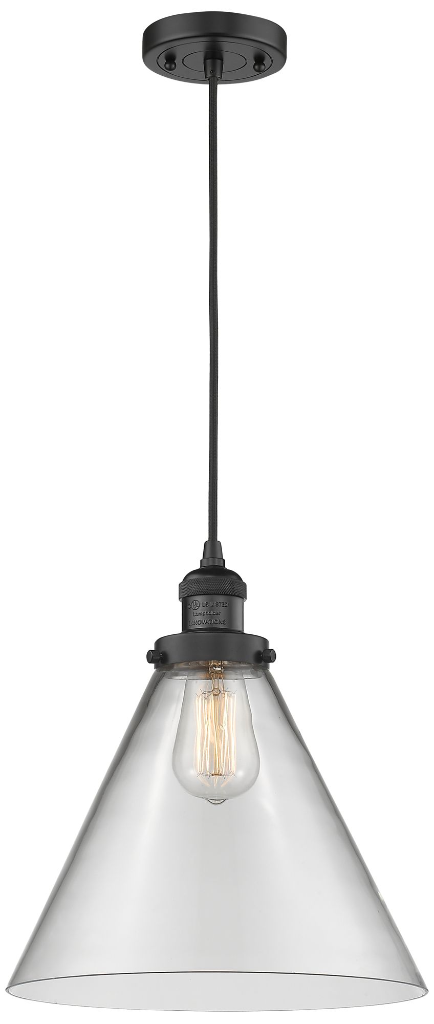 Franklin Cone 12" Matte Black Corded Mini Pendant w/ Clear Shade