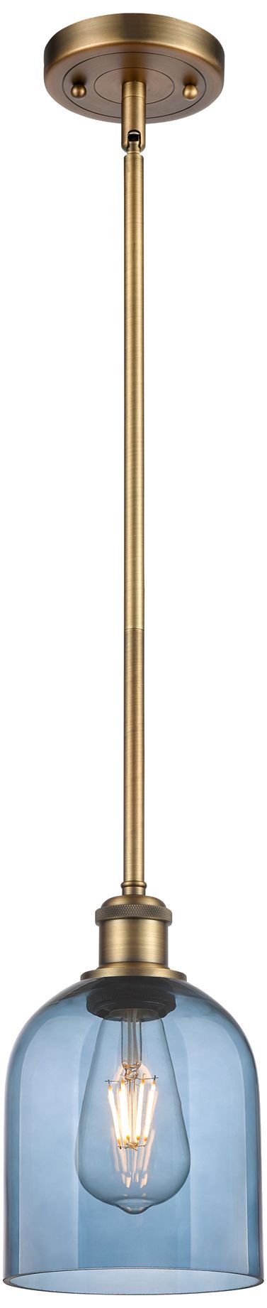 Ballston Bella 5.5"W Brushed Brass Stemmed Mini Pendant w/ Blue Shade