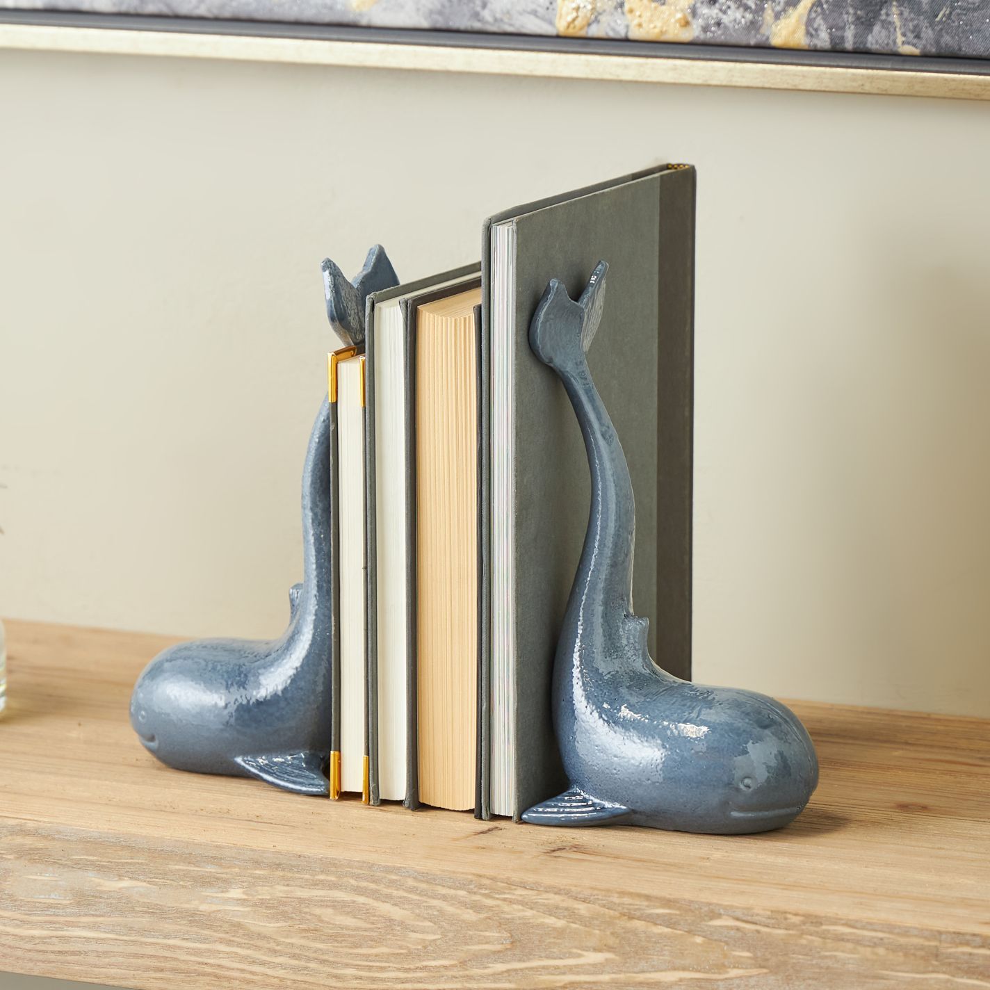 Blue Metal Coastal Bookends, S/2 5"W, 10"H