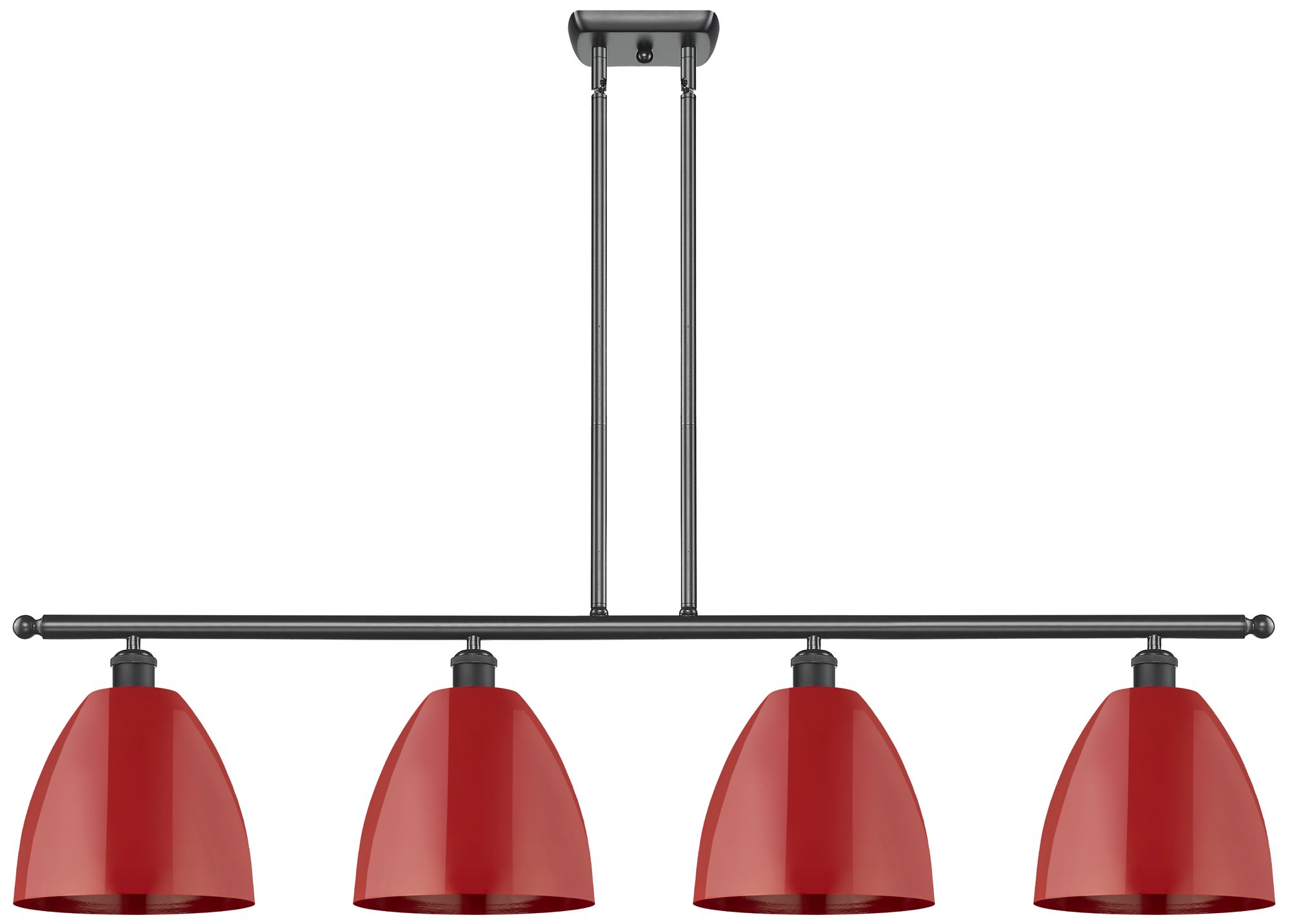 Plymouth Dome 48" Wide 4 Light Matte Black Island Light w/ Red Shade