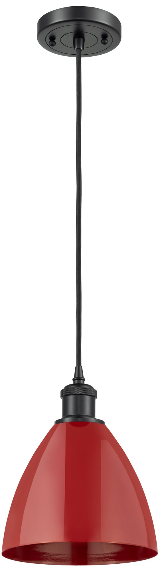Ballston Plymouth Dome 7.5"W Matte Black Corded Mini Pendant w/ Red Sh