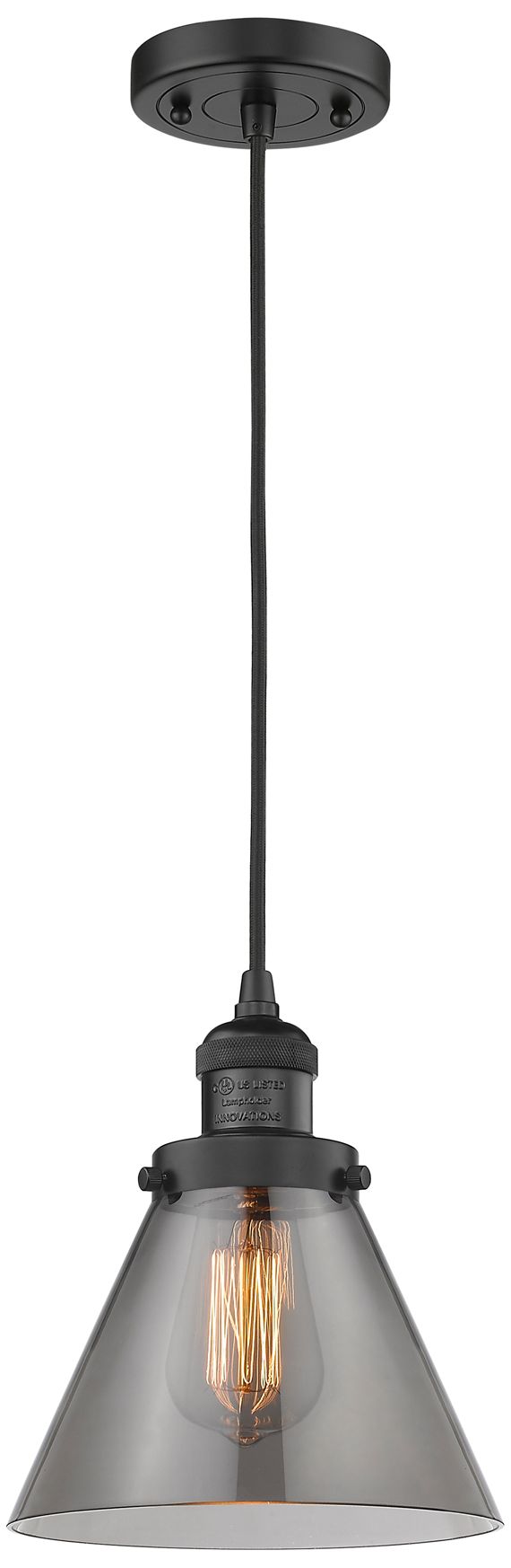 Franklin Restoration Cone 8" Matte Black Corded Mini Pendant w/ Smoke