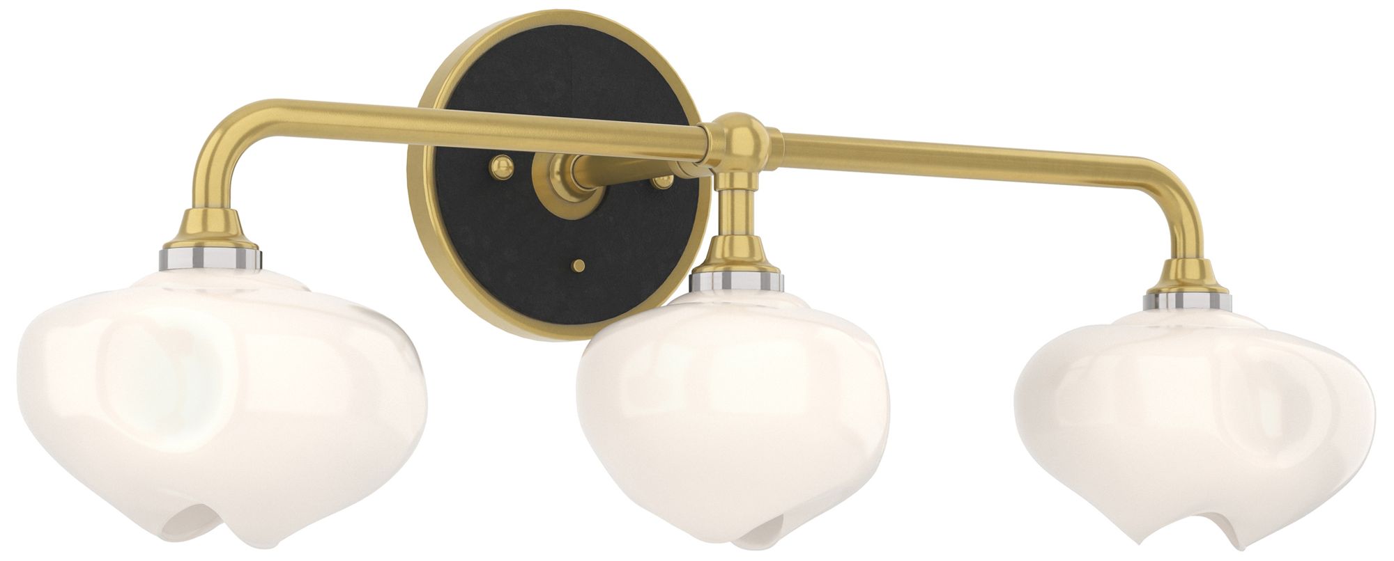 Ume 22"W 3-Light Black Accented Curved Brass Bath Sconce w/ Frosted Sh
