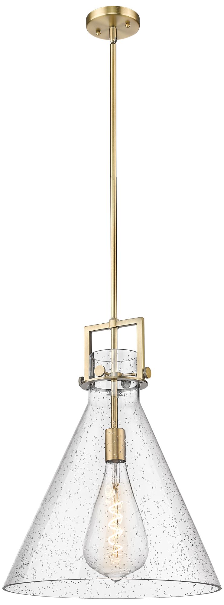 Newton Cone 16" Wide Stem Hung Brushed Brass Pendant With Seedy Shade