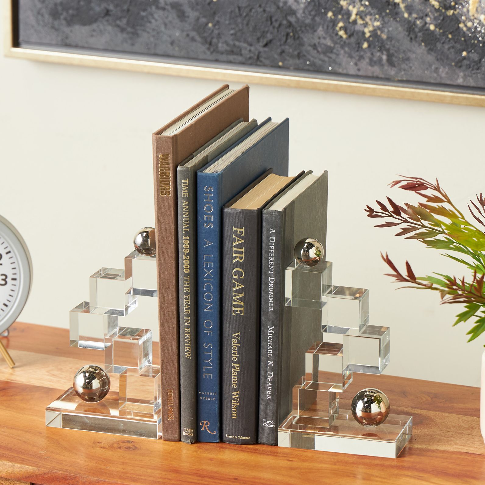 Clear Glass Glam Bookends, S/2 5"W, 8"H