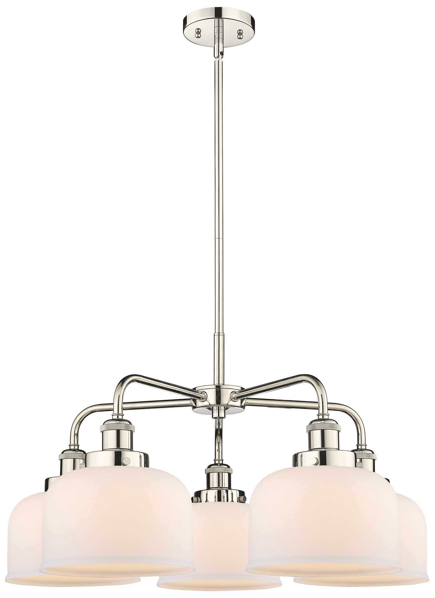 Bell 26"W 5 Light Polished Nickel Stem Hung Chandelier w/ White Shade