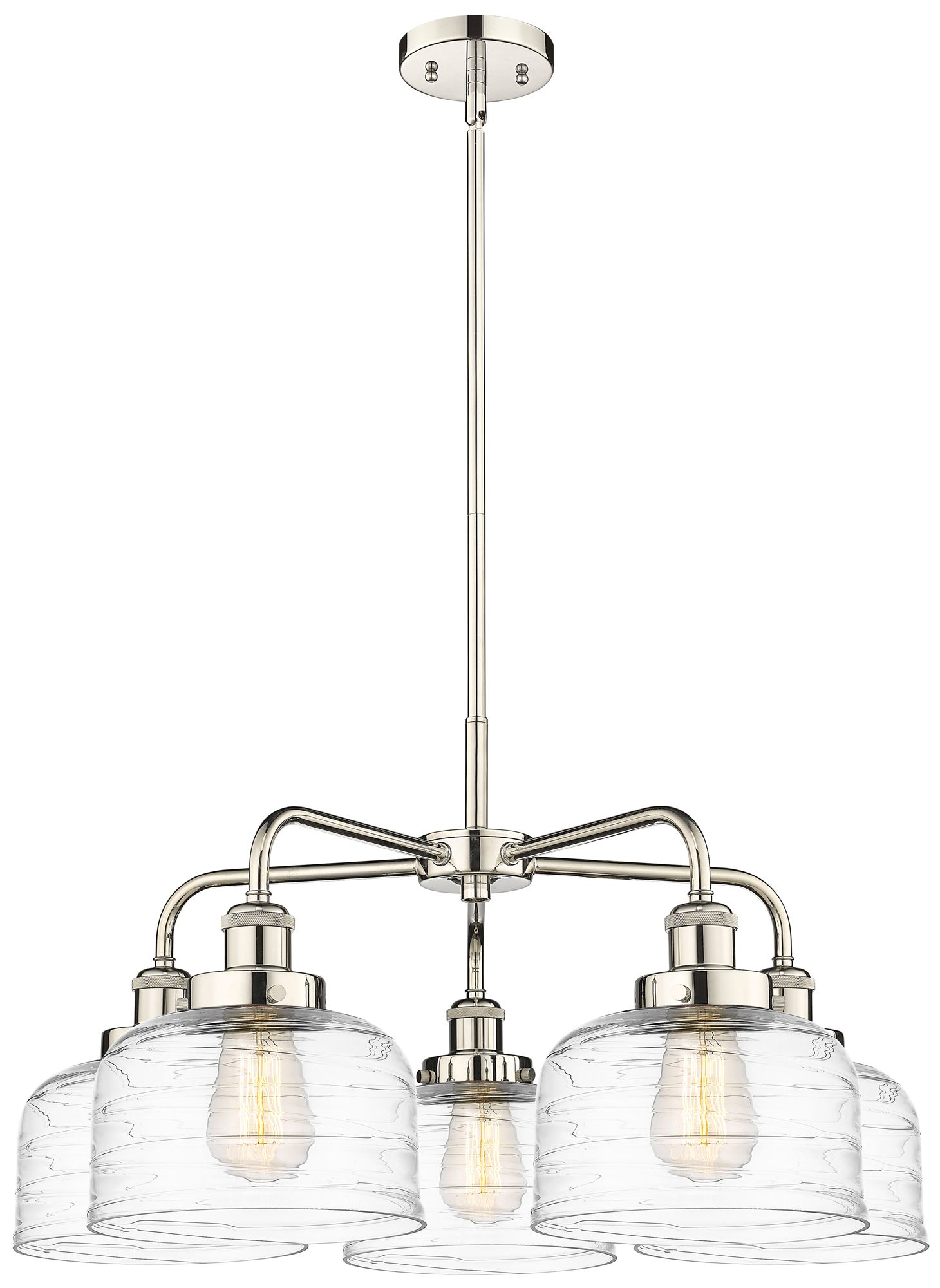 Bell 26"W 5 Light Polished Nickel Stem Hung Chandelier w/ Deco Swirl S