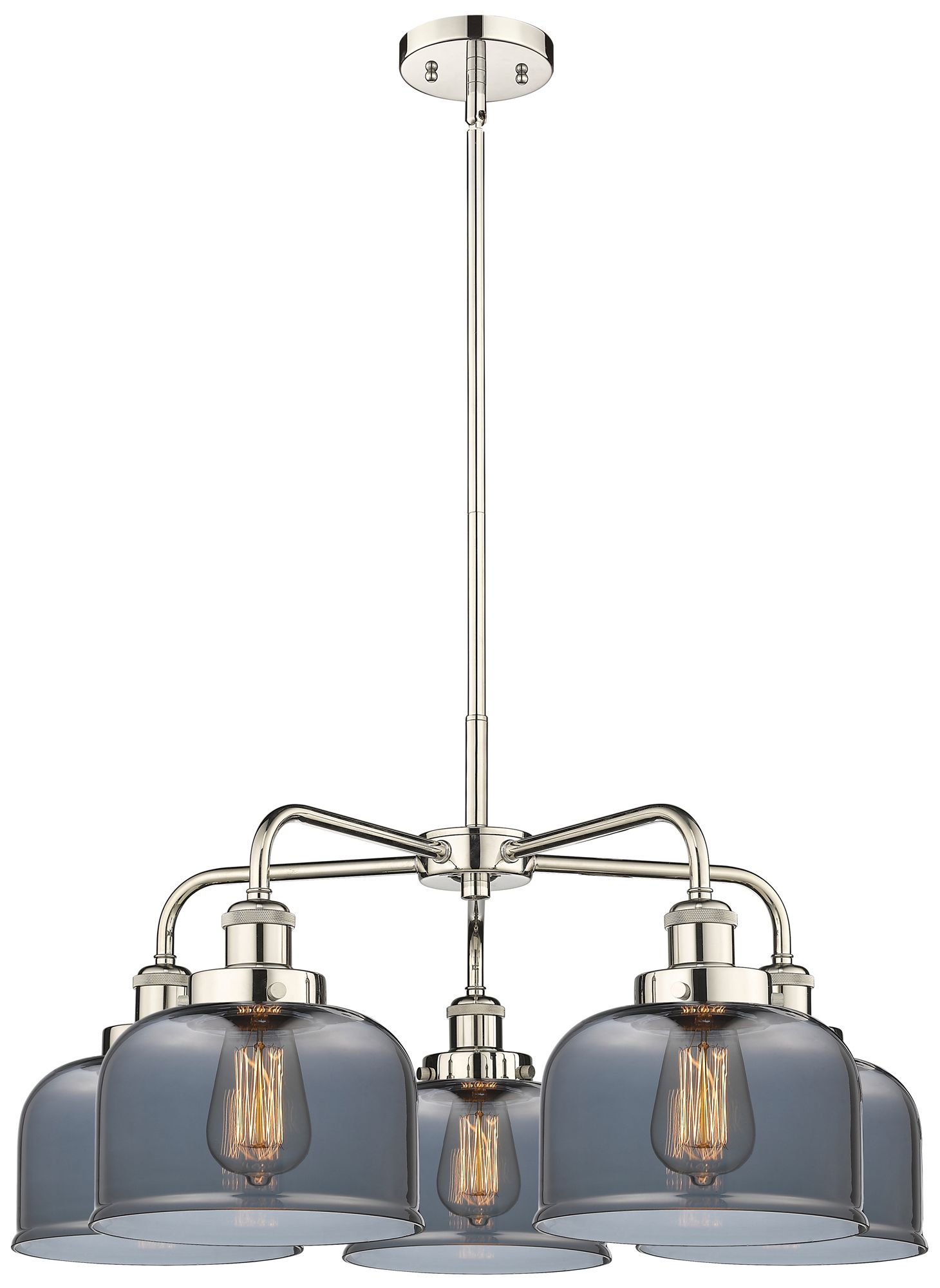 Bell 26"W 5 Light Polished Nickel Stem Hung Chandelier w/ Smoke Glass