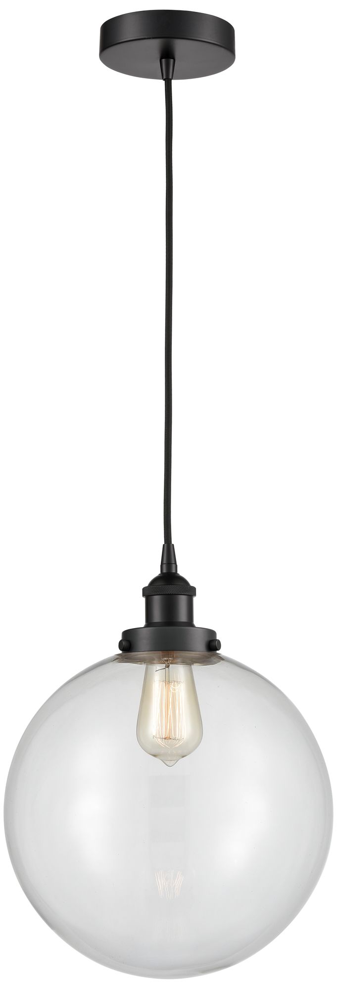 Beacon 12" Matte Black Mini Pendant w/ Clear Shade