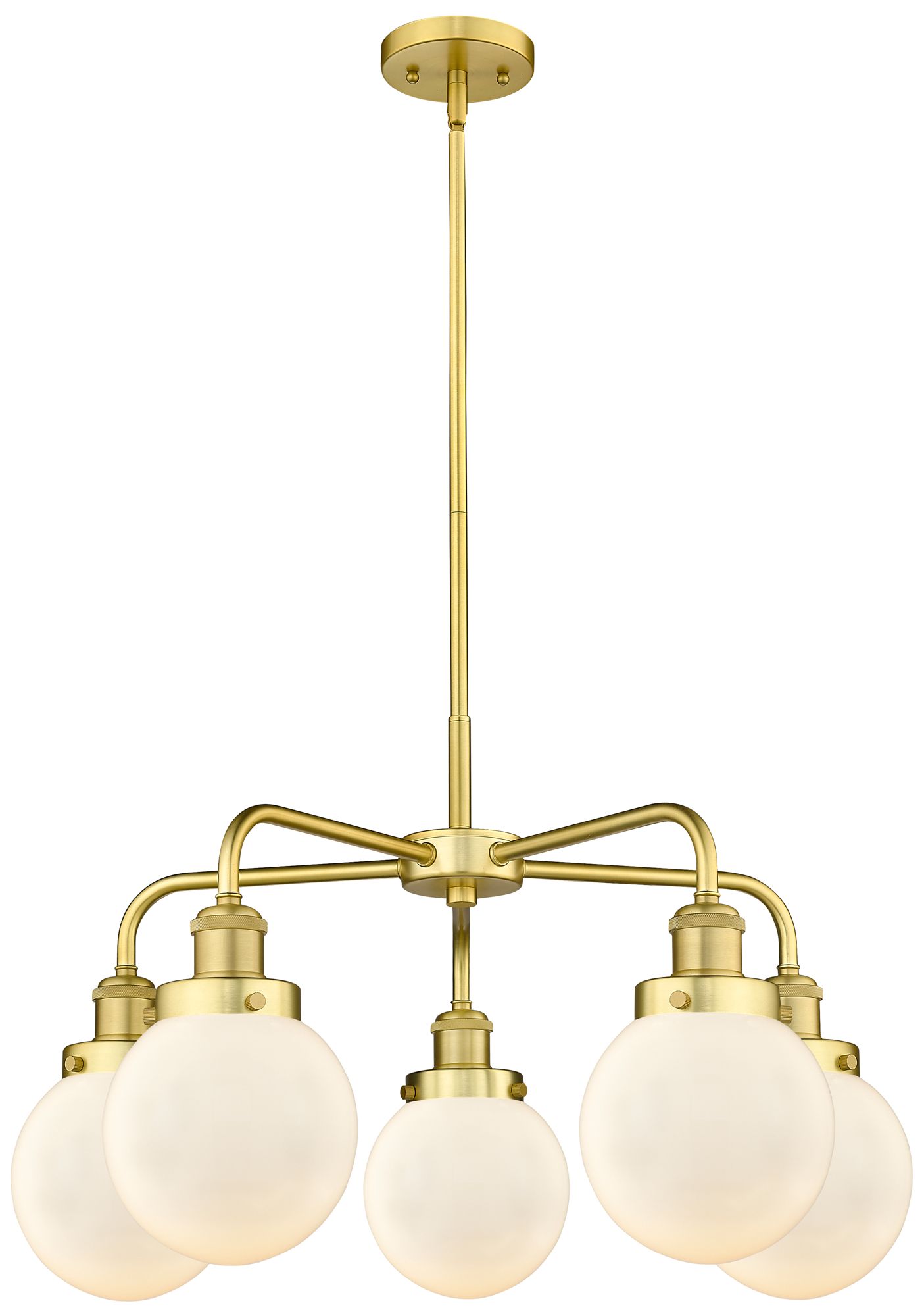 Beacon 24"W 5 Light Satin Gold Stem Hung Chandelier w/ White Shade