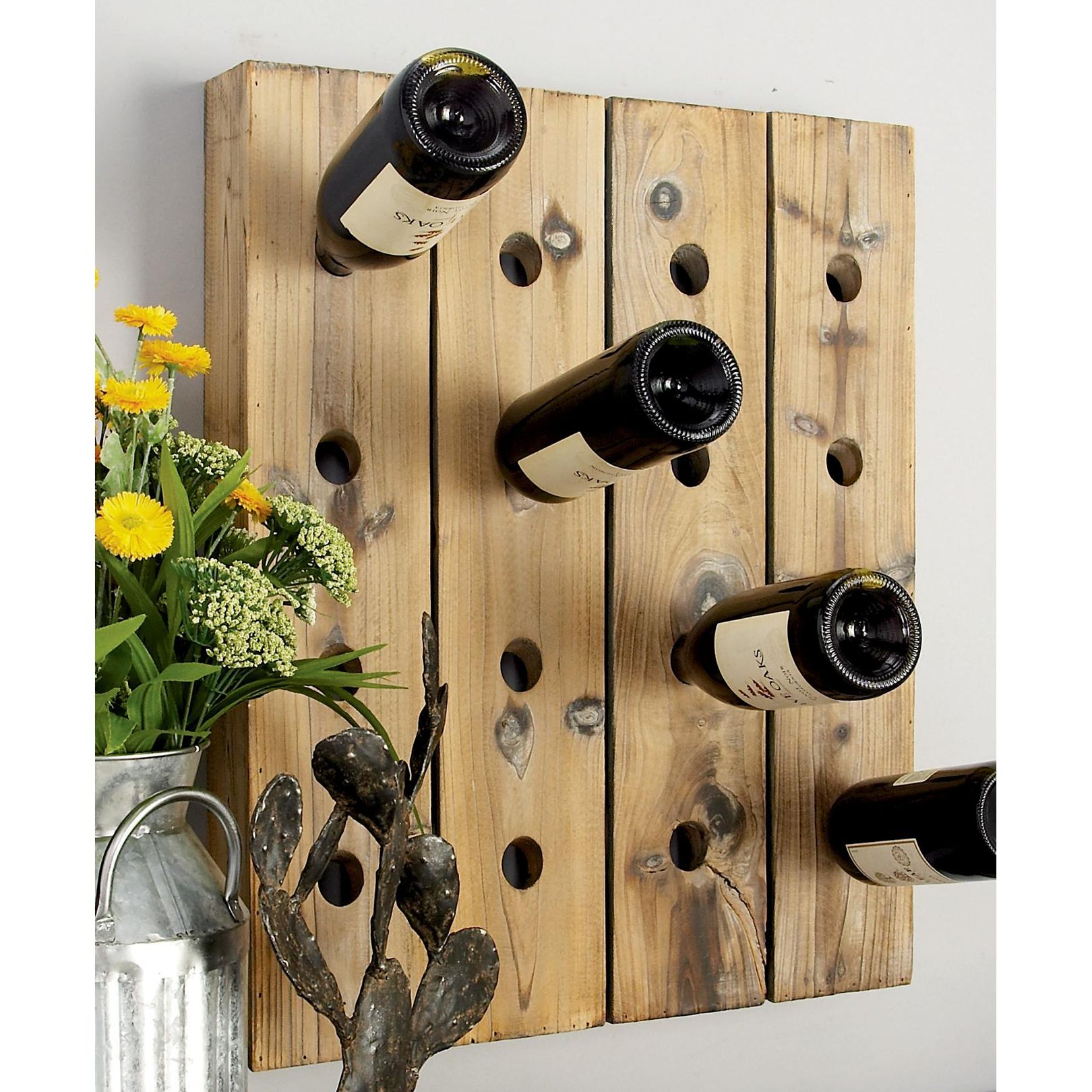 Brown Wood Rustic Wall Wine Rack, 21" x 4" x 25"