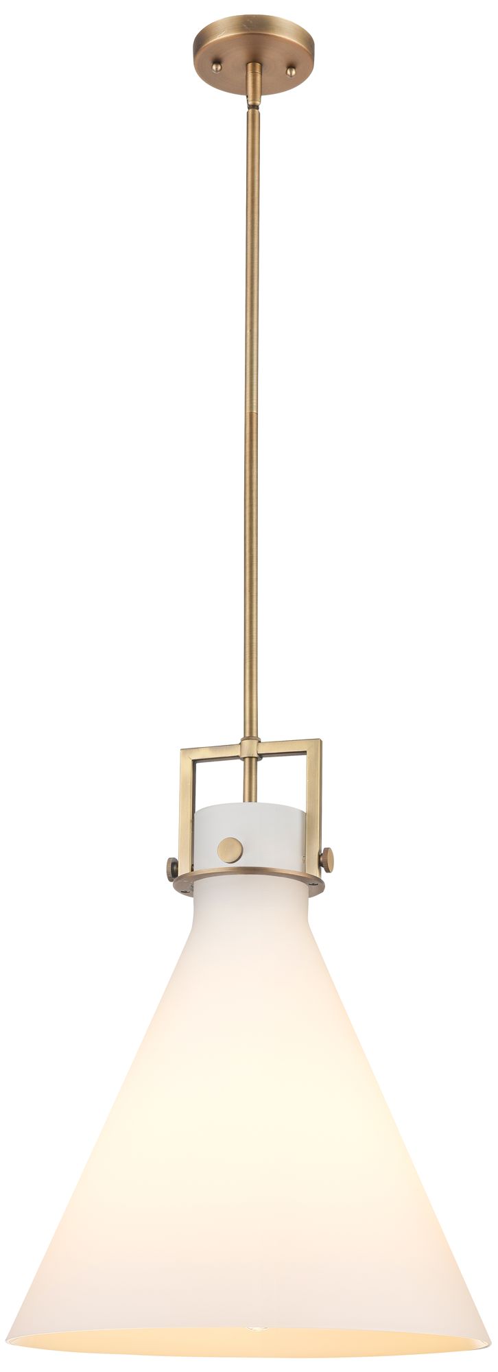Newton Cone 16" Wide Stem Hung Brushed Brass Pendant With White Shade