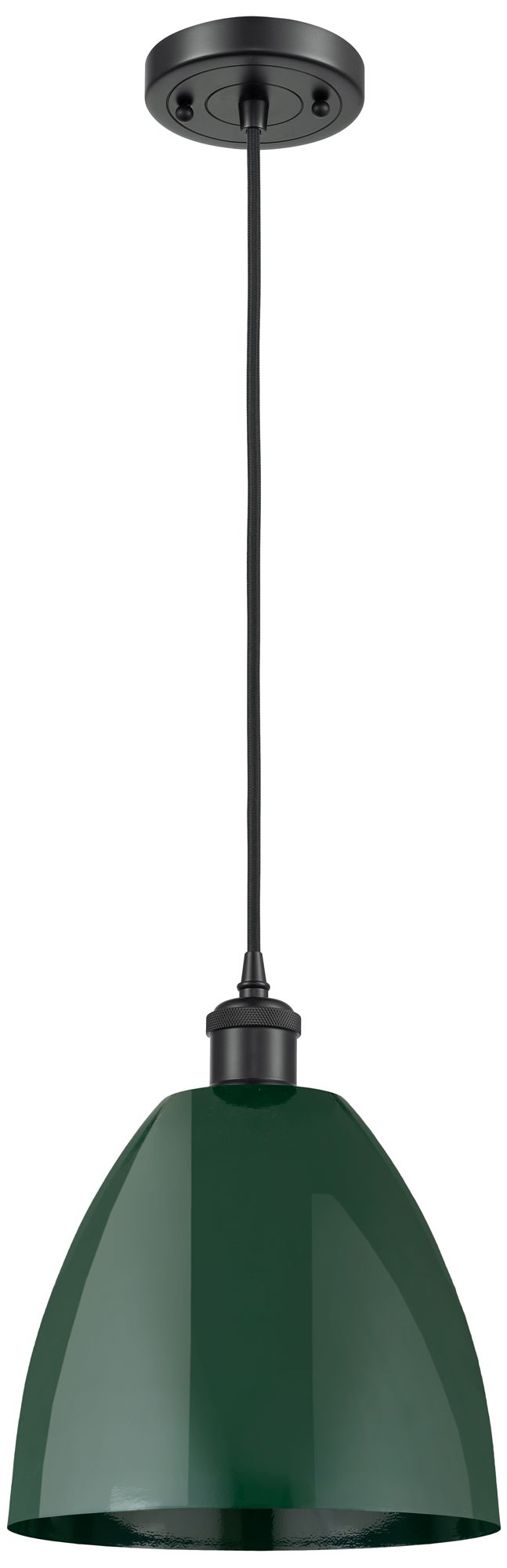 Ballston Plymouth Dome 9"W Matte Black Corded Mini Pendant w/ Green Sh