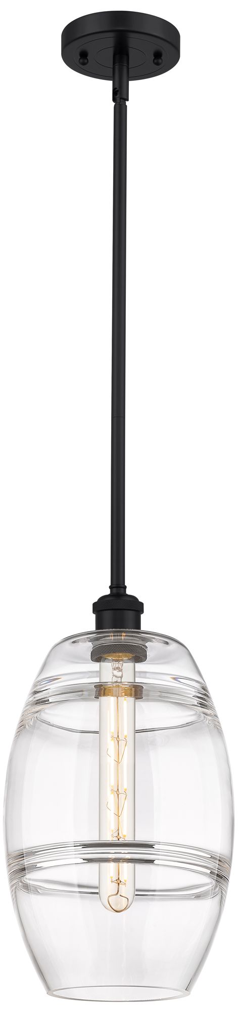 Ballston Vaz 8" Wide Matte Black Stem Hung Mini Pendant With Clear Sha