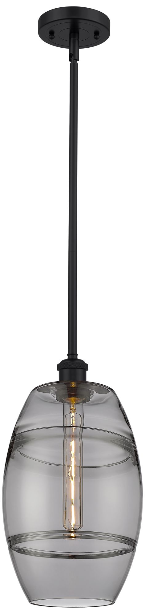 Ballston Vaz 8" Wide Matte Black Stemmed Mini Pendant w/ Light Smoke S
