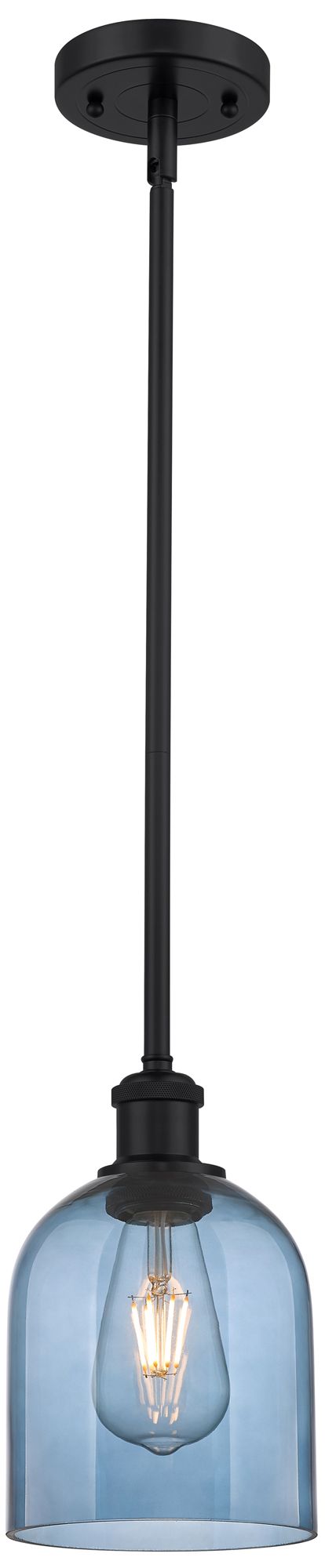 Ballston Bella 5.5"W Matte Black Stemmed Mini Pendant w/ Blue Shade