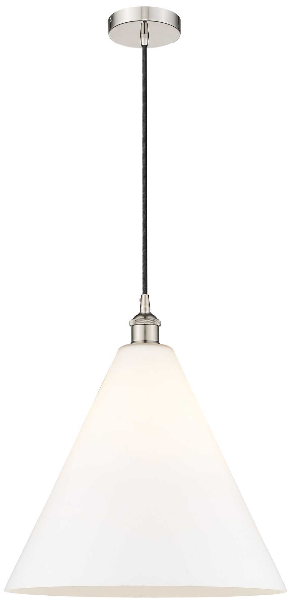Edison Cone 16" Polished Nickel Cord Hung Pendant w/ Matte White Shade
