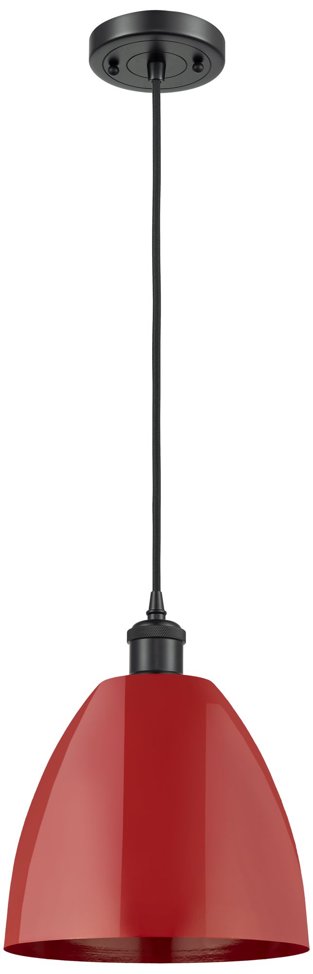 Ballston Plymouth Dome 9" Wide Matte Black Corded Mini Pendant w/ Red