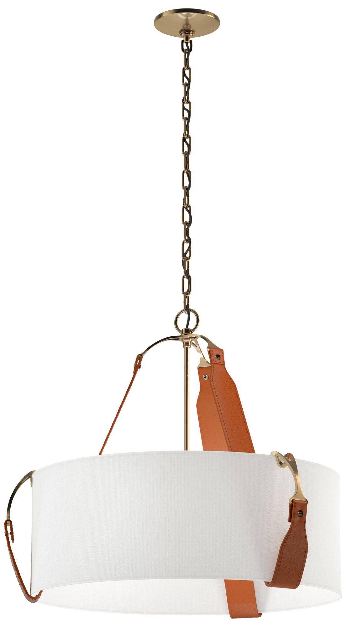 Saratoga 26.2"W Chestnut Accented Antique Brass Pendant w/ Anna Shade
