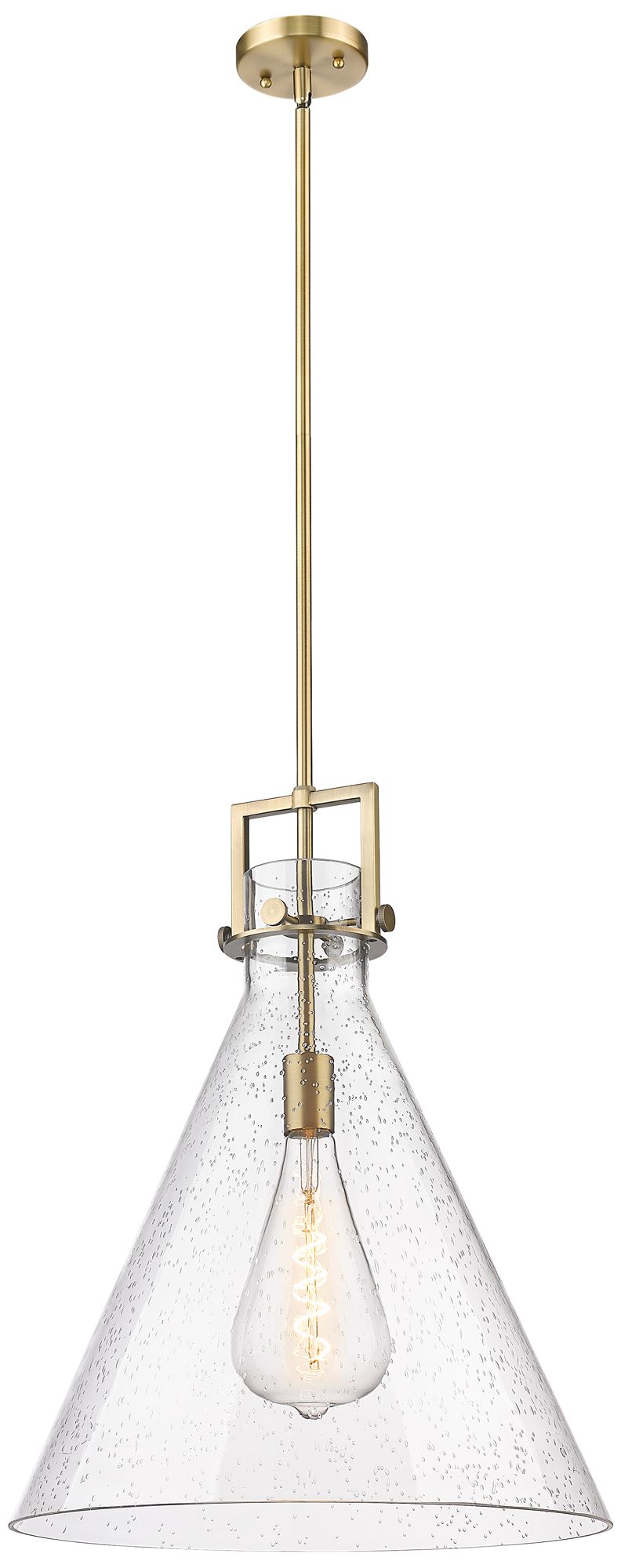 Newton Cone 18" Wide Stem Hung Brushed Brass Pendant With Seedy Shade