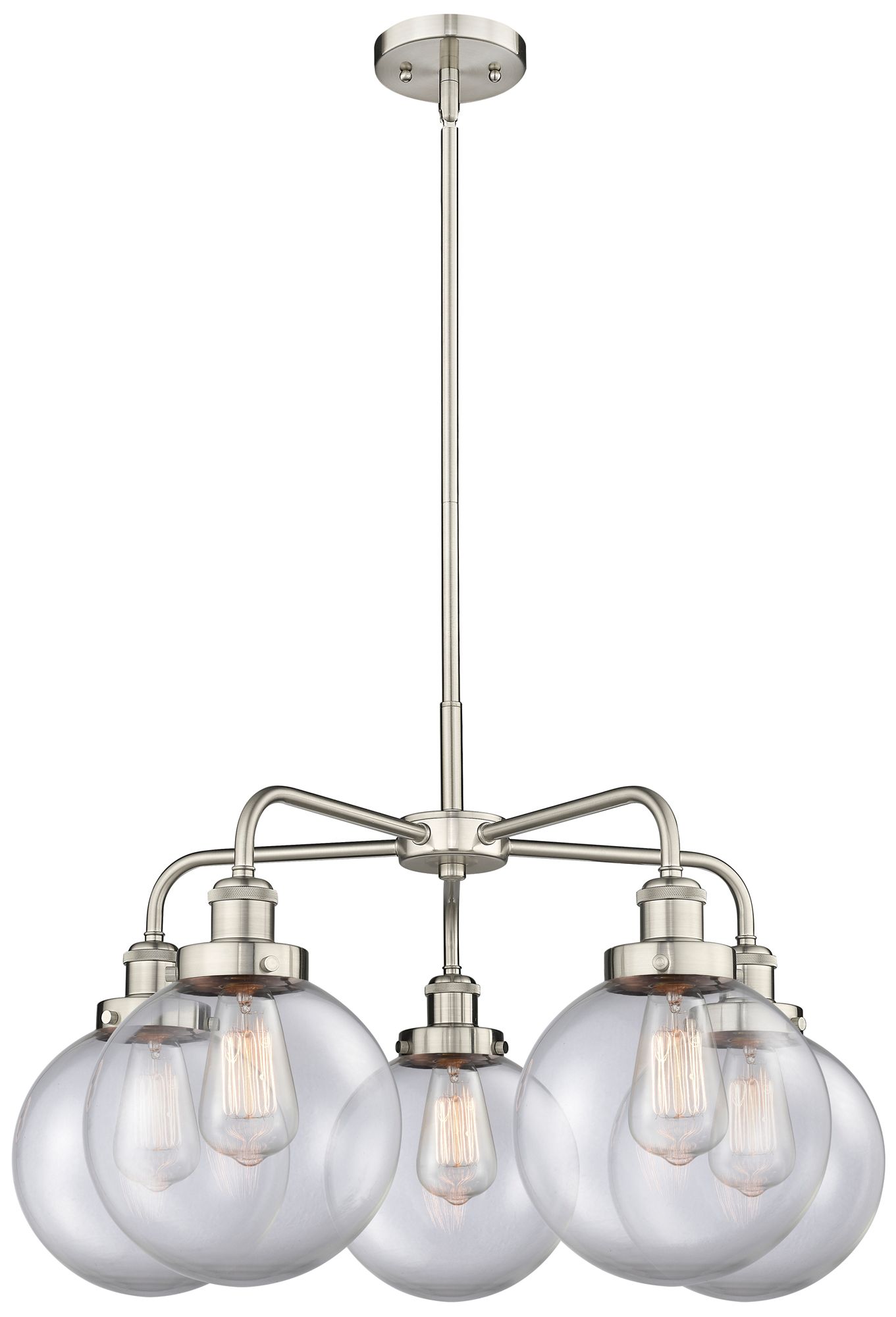 Beacon 26"W 5 Light Satin Nickel Stem Hung Chandelier w/ Clear Glass S