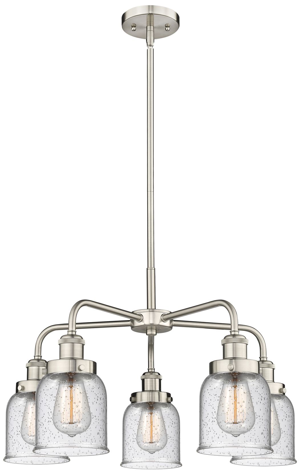 Bell 23"W 5 Light Satin Nickel Stem Hung Chandelier With Seedy Glass S
