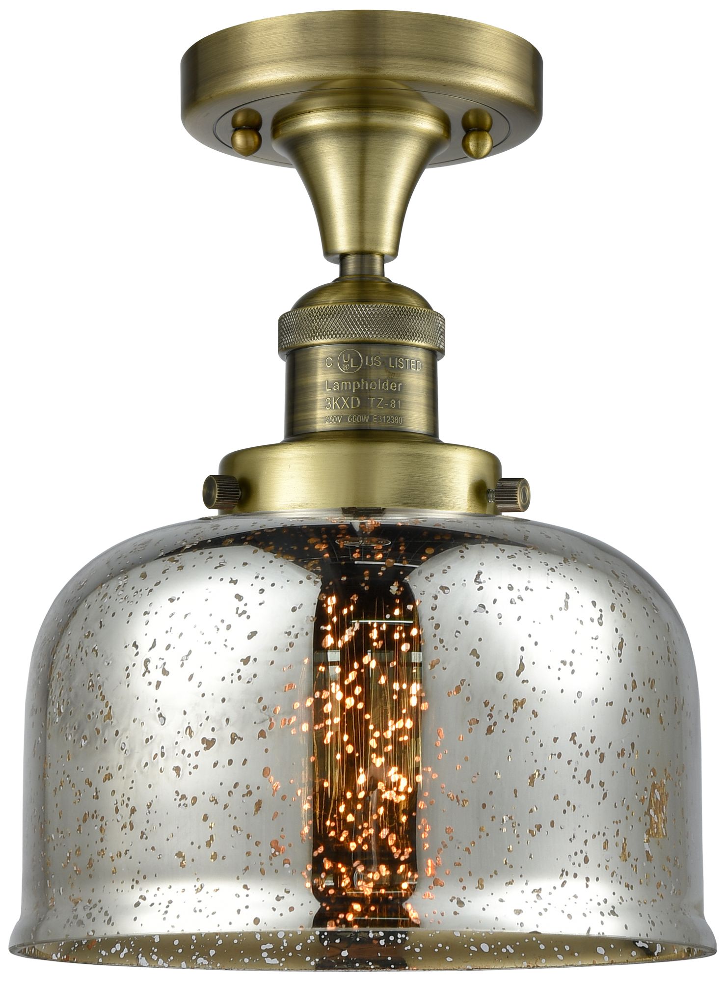 Bell 8" Antique Brass Semi Flush Mount w/ Silver Plated Mercury Shade