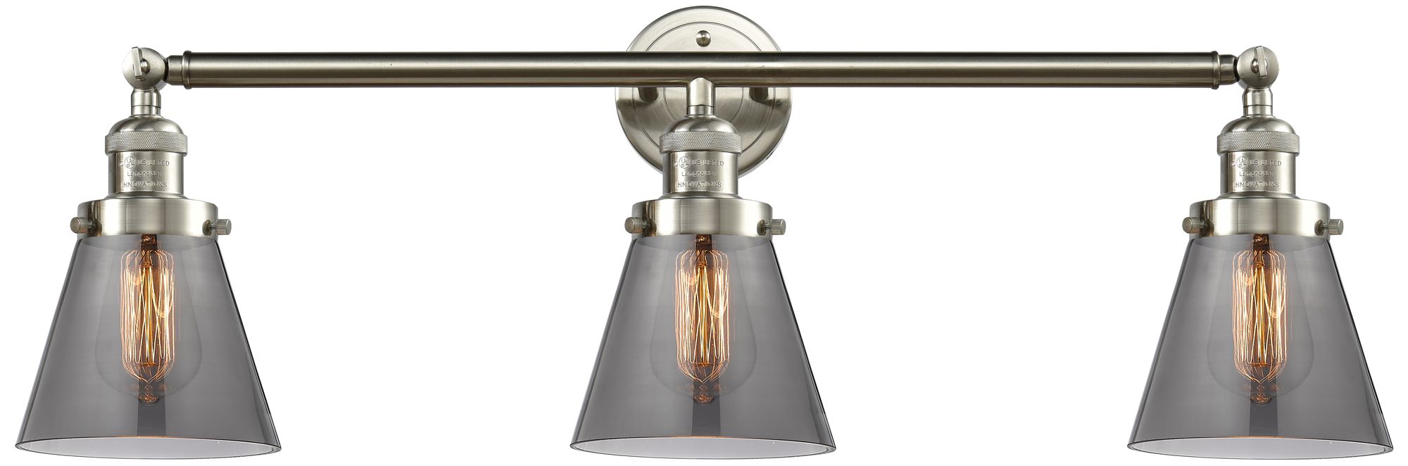Cone 30" 3-Light Brushed Satin Nickel Bath Light w/ Plated Smoke Shade