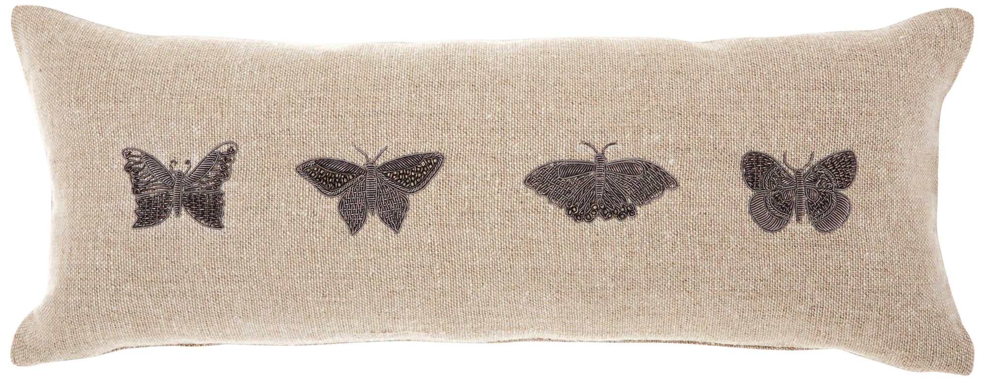 Couture Luster Linen Embellished Butterflies 20"x 8" Pillow