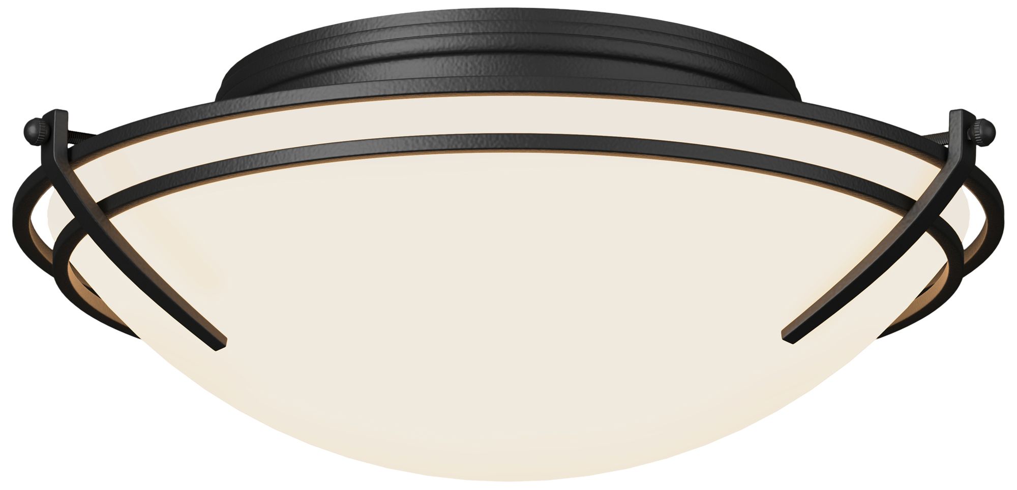 Presidio Tryne 15.7" Wide Black Flush Mount With Opal Glass Shade
