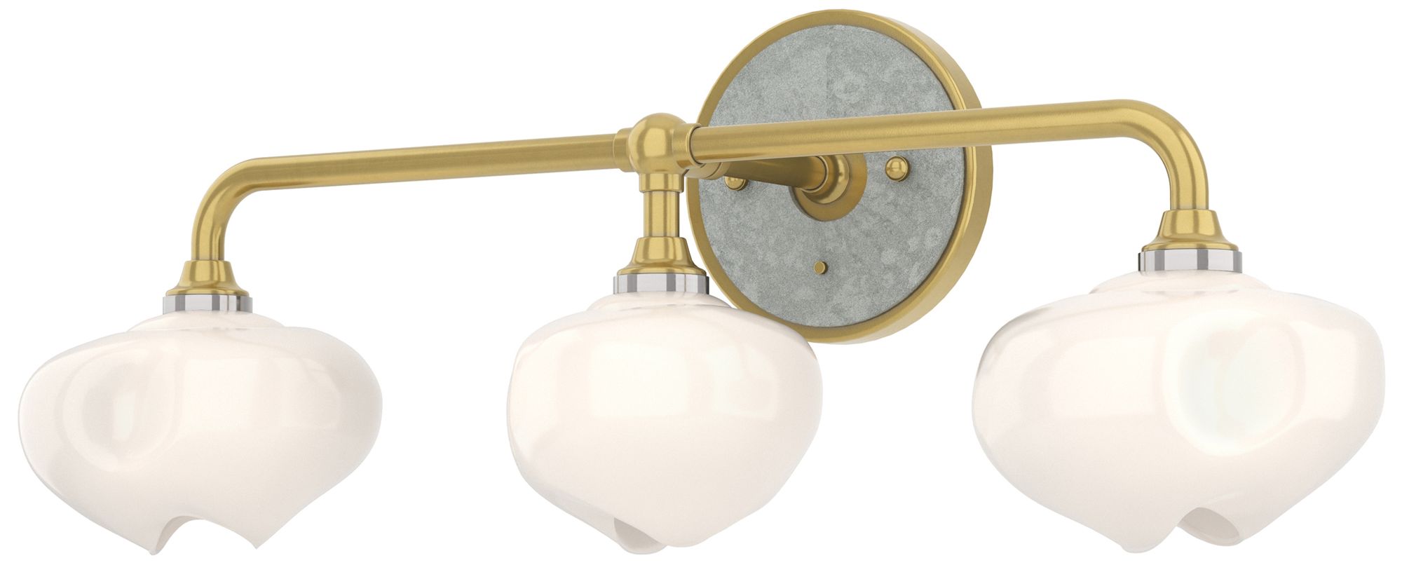 Ume 22"W 3-Light Accented Curved Arm Brass Bath Sconce w/ Frosted Sha