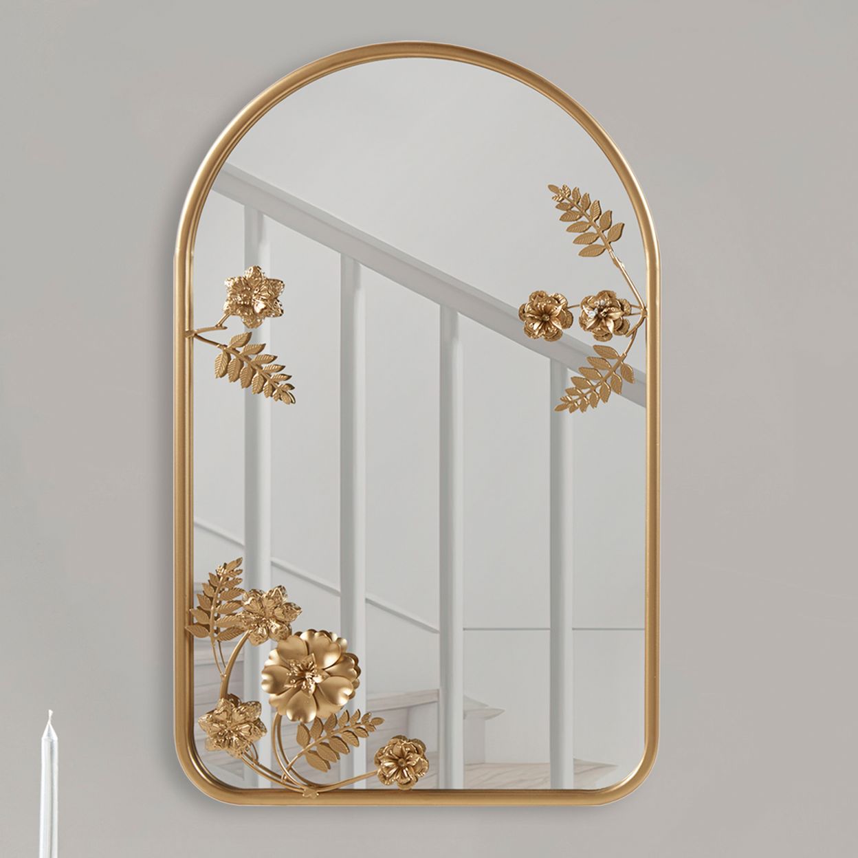 Madison Park Adaline 26" x 16" Gold Arch Floral Wall Mirror