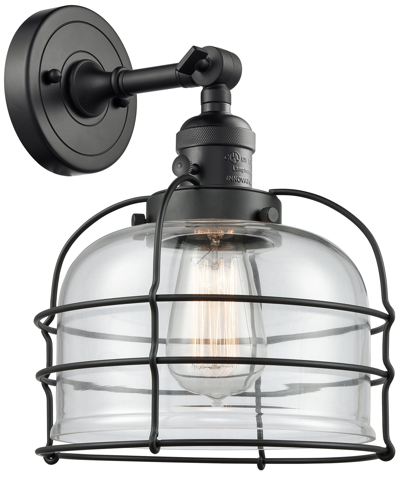 Bell Cage 9" Matte Black Sconce w/ Clear Shade