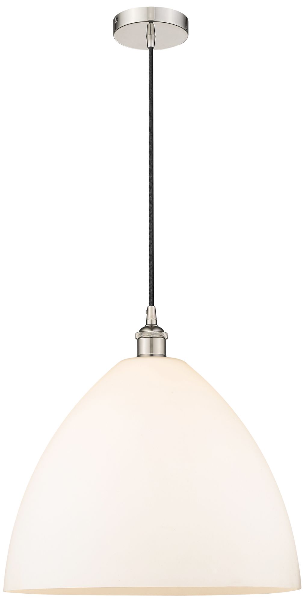 Edison Dome 16" Polished Nickel Cord Hung Pendant w/ Matte White Shade