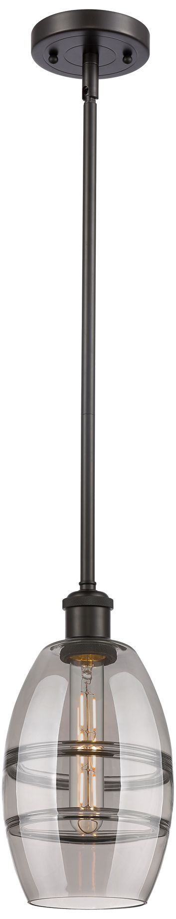 Ballston Vaz 5.88"W Oiled Bronze Stemmed Mini Pendant w/ Light Smoke S