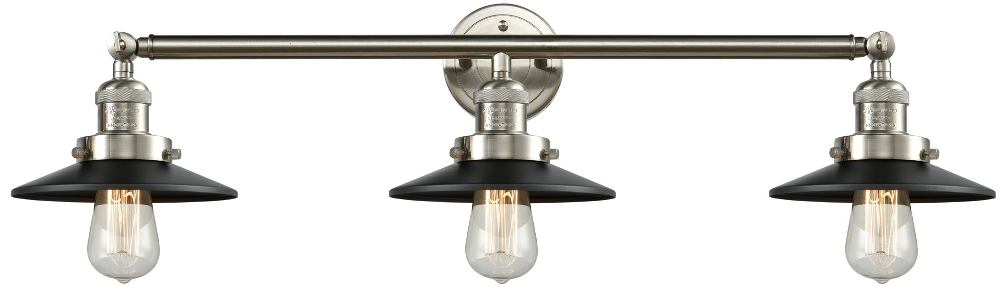 Railroad 32" 3-Light Brushed Satin Nickel Bath Light w/ Matte Black Sh