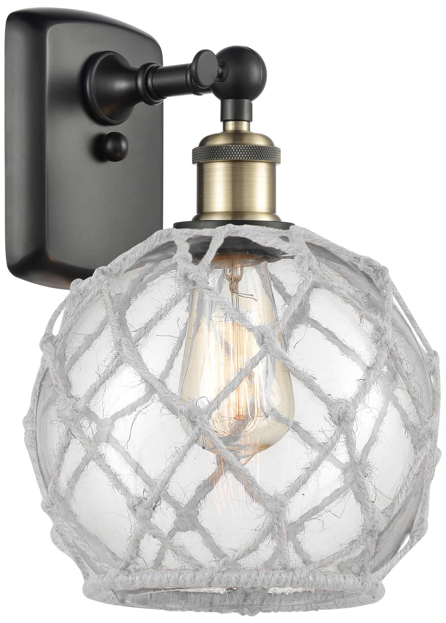 Farmhouse Rope 13" High Black Brass Sconce w/ Clear and White Rope Sha