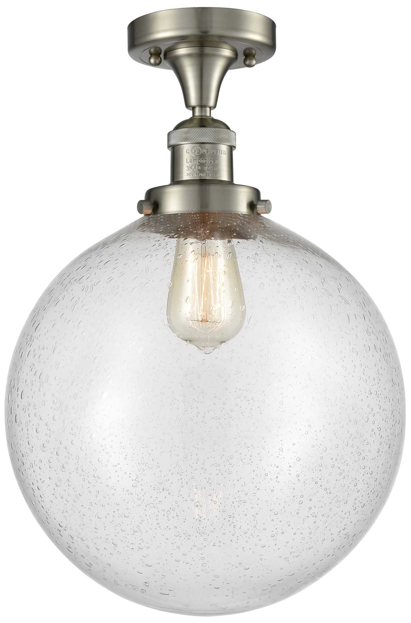 Beacon 12" Wide Brushed Satin Nickel Semi Flush Mount w/ Seedy Shade