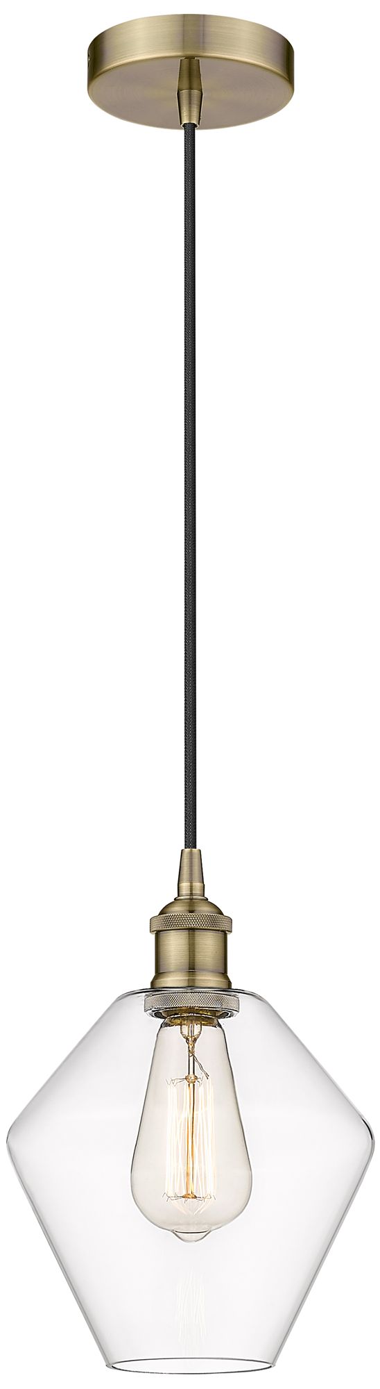 Cindyrella 8" Antique Brass Mini Pendant w/ Clear Shade