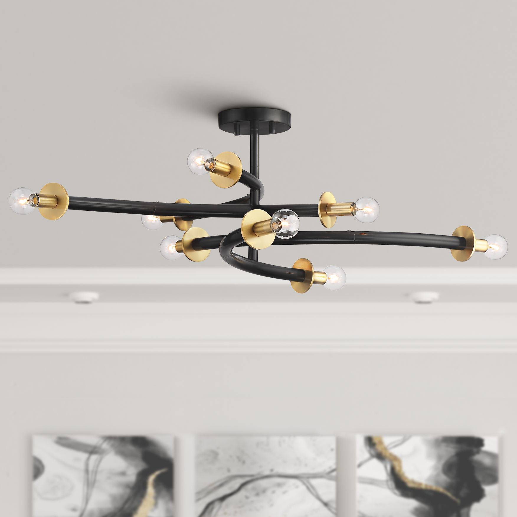 Possini Euro Alturus 34" Gloss Black Warm Brass 8-Light Ceiling Light