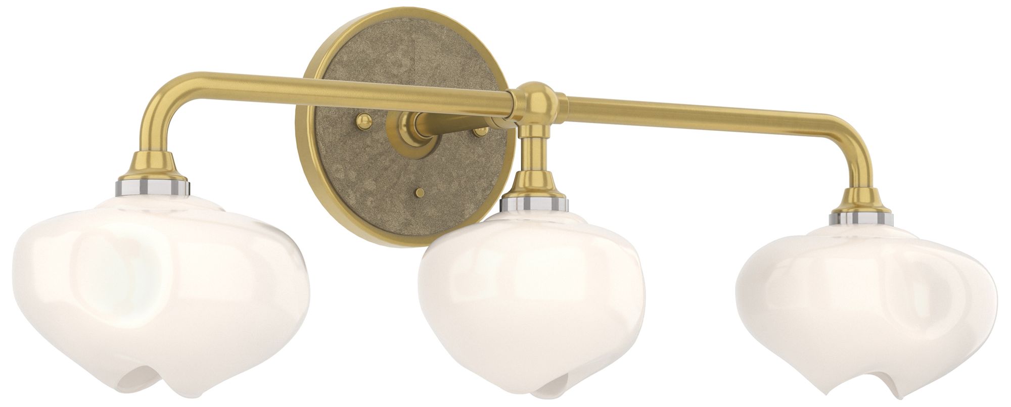 Ume 22"W 3-Light Gold Accented Curved Brass Bath Sconce w/ Frosted Sha
