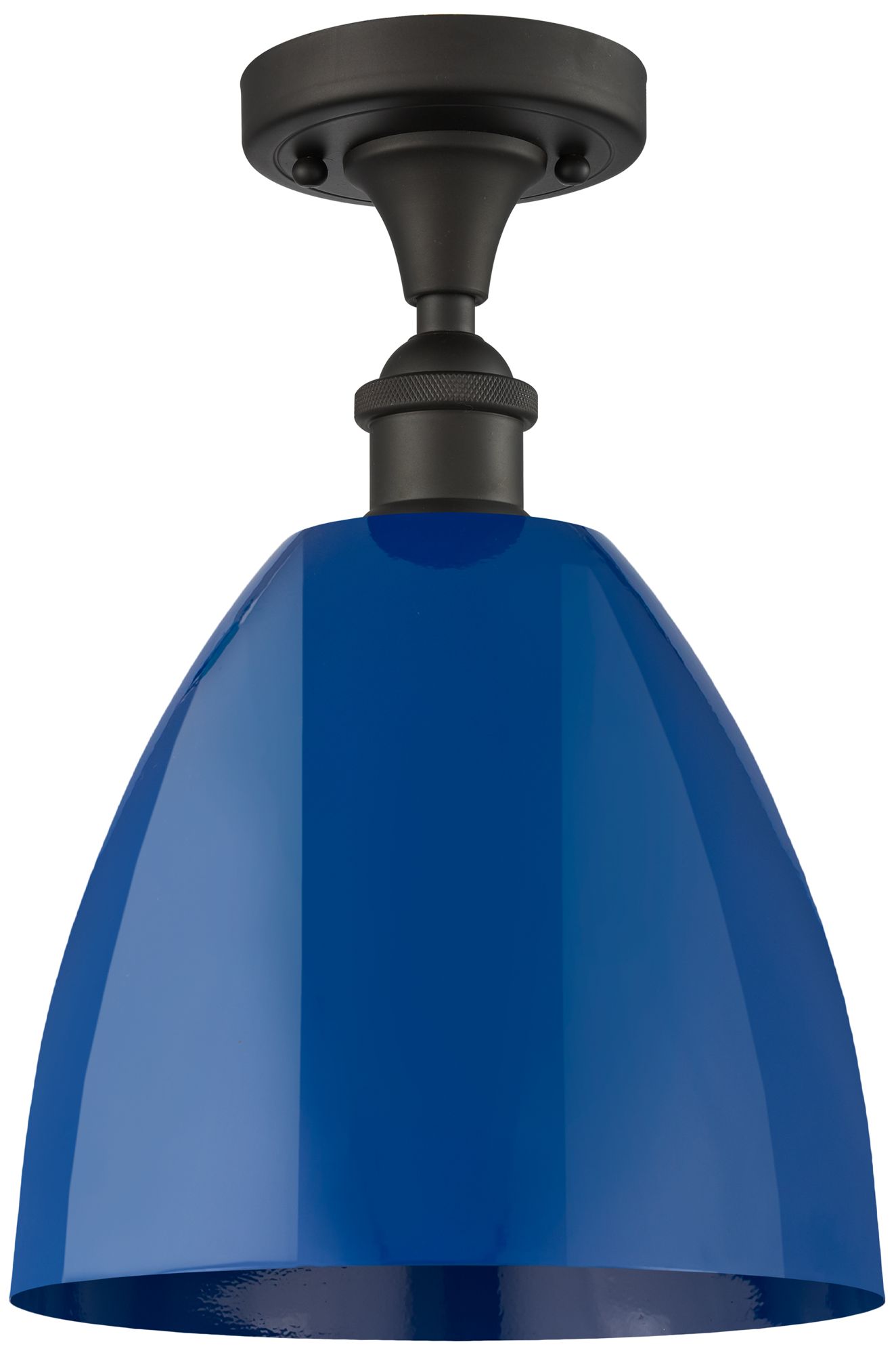 Plymouth Dome 9" Wide Oil Rubbed Bronze Semi Flush Mount w/ Blue Shade